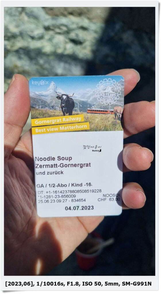 유인 매표소 이용시 스위스패스와 라면쿠폰을 제시하시면 됩니다. 스위스패스 이용시 할인된 가격에 기차표를 발권할 수 있는데 저희는 2인에 126프랑 결제했네요. 126프랑이면 환률상 대충 18만 5천원 돈이네요..ㄷㄷ