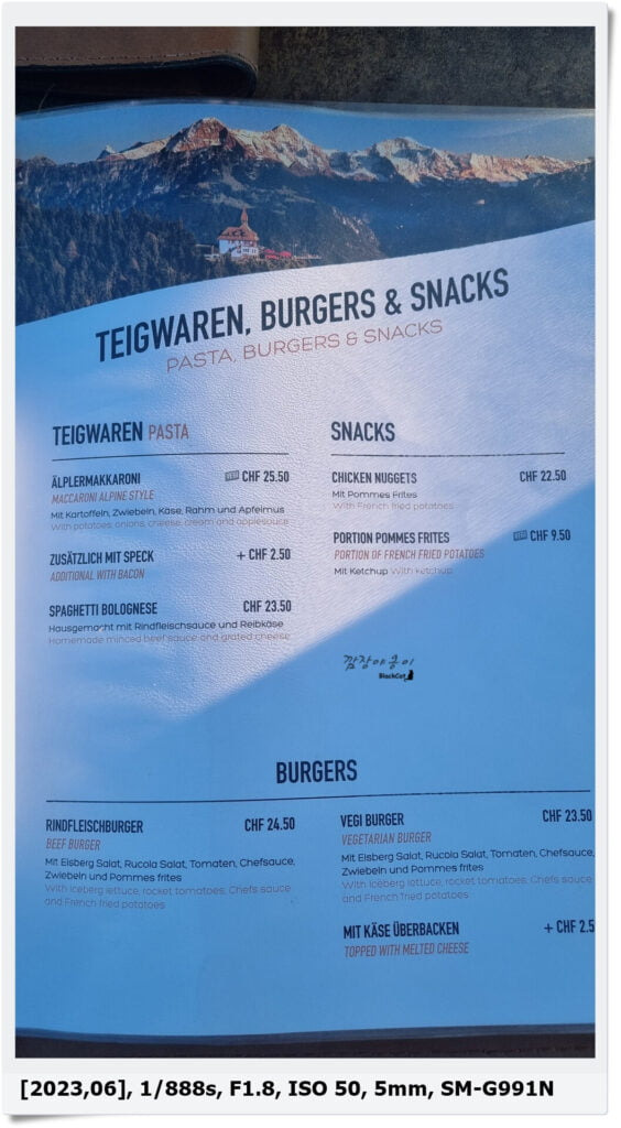푸니쿨라를 이용해 정상에 올라가시면 딱 2개 밖에 없습니다. 한 곳은 맥주와 음료를 마실 수 있는 식당, 그리고 인터라켄을 내려다 볼 수 있는 전망대입니다.
