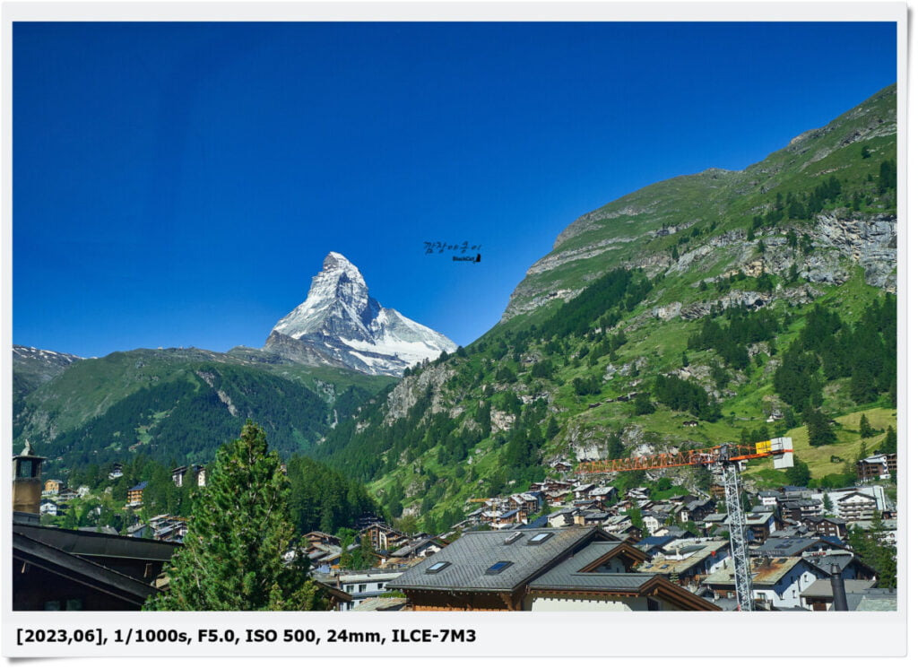 출발하자 말자 작은 마을의 뒤쪽으로 영화가 시작할때 나오는 '마테호른 산'이 나오는데요. 예전에 꽃보다 할배 유럽편에서 할배들이 스위스 관광청에서 집을 대여 받아 촬영 했던 곳이 이 마을 어딘가에 있답니다.