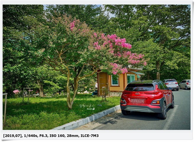 주차장부터 배롱나무가 보이는데요. 큰 버스도 주차가 가능한 곳도 따로 마련되어 있을 만큼 나름 너른 주차공간이 마련되어 있습니다.