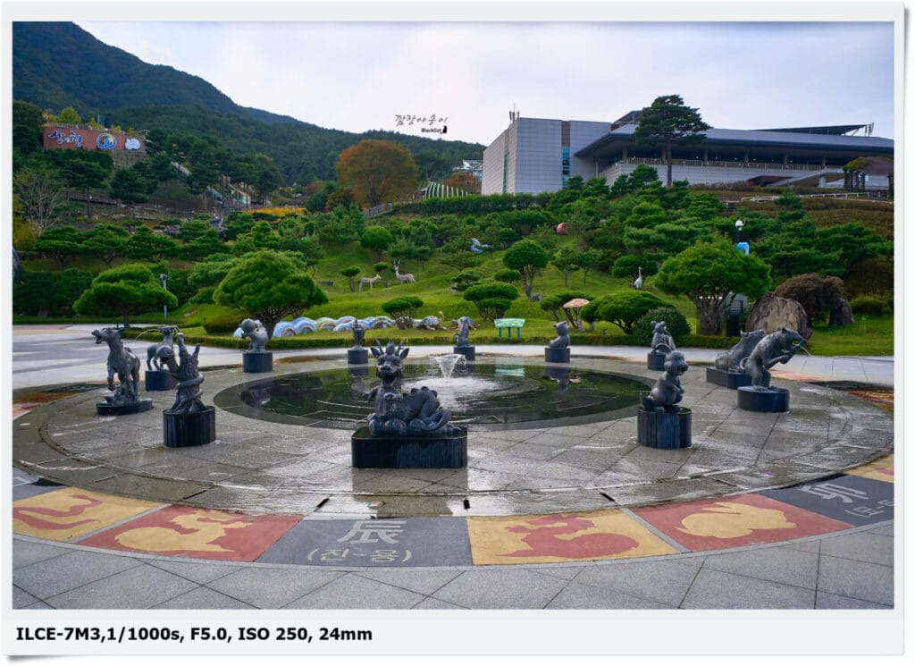 그래도 걸어 올라갔다 걸어 내려오면서 짧지만 주변을 돌아볼 수 있었는데요. 한의학과 관련된 테마파크라 그런지 십이지신과 관련된 조각상도 많고 물, 소나무, 바위, 거북이 등 장수를 뜻하는 십장생과 관련된 조각상 등도 많이 보였네요.
