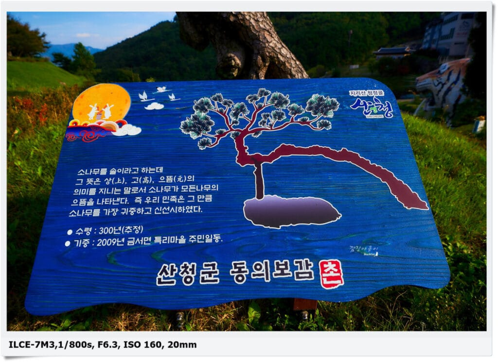 2009년 금서면 특리마을 주민들이 기증한 300살 정도로 추정되는 소나무입니다. 우리가 흔히 알고 있는 소나무는 보통 반듯하게 쭉쭉 위로 자라는데 기증한 이 소나무는 특이하게도 옆으로 자라고 있네요.