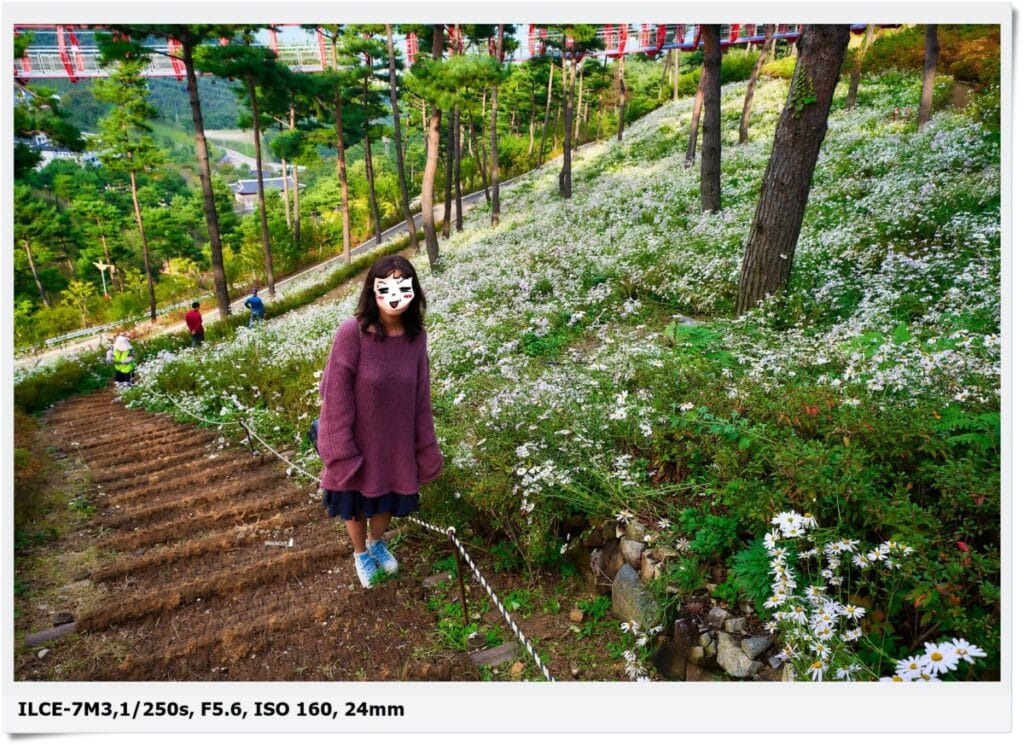 계단 옆, 흔들다리 아래 등 주변에 아햔 구절초가 많이 피어 있는데 무서운 이모님들이 지키고 있어서 안에 들어가지는 못하고 앞에서만 보실 수 있답니다. 참고하세요!!