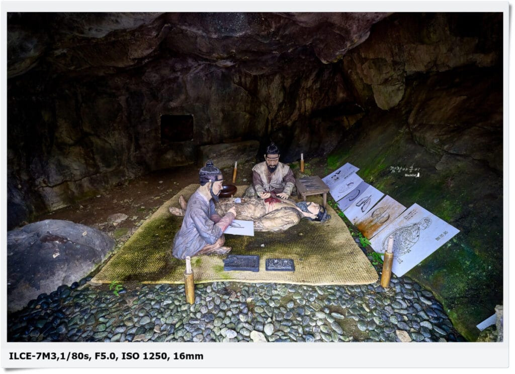 허준이 스승 류의태의 시신을 해부하는 장면을 묘사해둔 해부동굴이 있습니다. 이 해부동굴의 내부는 소설 '동의보감'과 인기리에 방영되었던 드라마 '허준'을 모티브로 해서 제작되었다고 하네요.