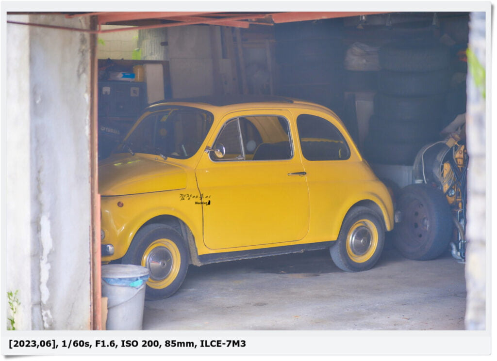잠시 마을을 둘러 보는데 열린 차고지 안에 있던 노란 자동차.. 과연 저 차가 굴러갈지는 모르겠지만 클래식한게 모델까지는 모르겠지만 예쁘네요.