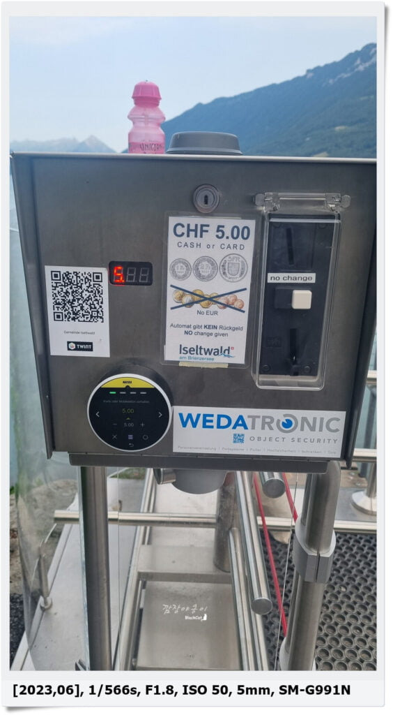 입장료는 1인에 5프랑으로 한화 약 7천원 정도인데요. 입장료를 거두는 바람에 북적이던 인원이 조금 줄었다곤 하는데.. 저희는 오전 7시반쯤 출발해서 8시쯤 도착했는데 정말 고요하게 저희 말곤 다른 아시아계 여성분 2명해서 4명밖에 없었네요 ㅋㅋ