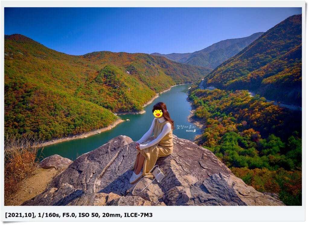 출발전에 미리 인스타를 통해 핫플레이스라고 알려진 곳을 확인하고 갔더니 남들 다 찍는 밀양호 물줄기를 뒷배경으로 한 인생사진으로 봐도 무방할 멋진 사진도 담을 수 있었는데요.