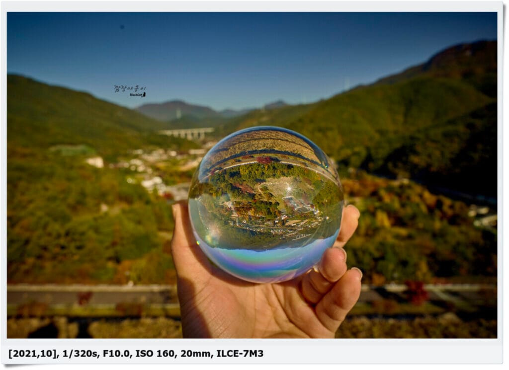 구슬로도 한번 찍어보려고 구슬도 가지고 갔는데 그걸 깜빡하고 구슬을 못찍은게 너무 아쉽네요.. 구슬속에 담긴 밀양호의 물줄기가 정말 기가 막혔을거 같은데..