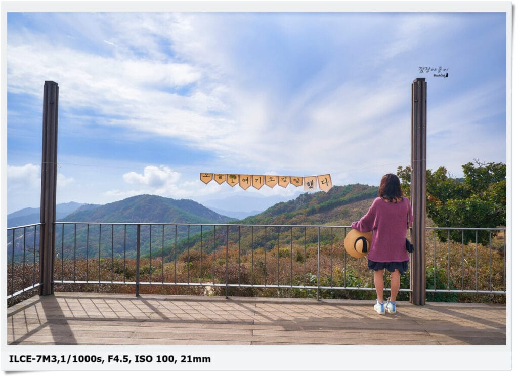 하늘계단을 올라가면 전망대(산불감시초소)가 나오는데 바로 앞에 액자 모양의 포토존이 있습니다.