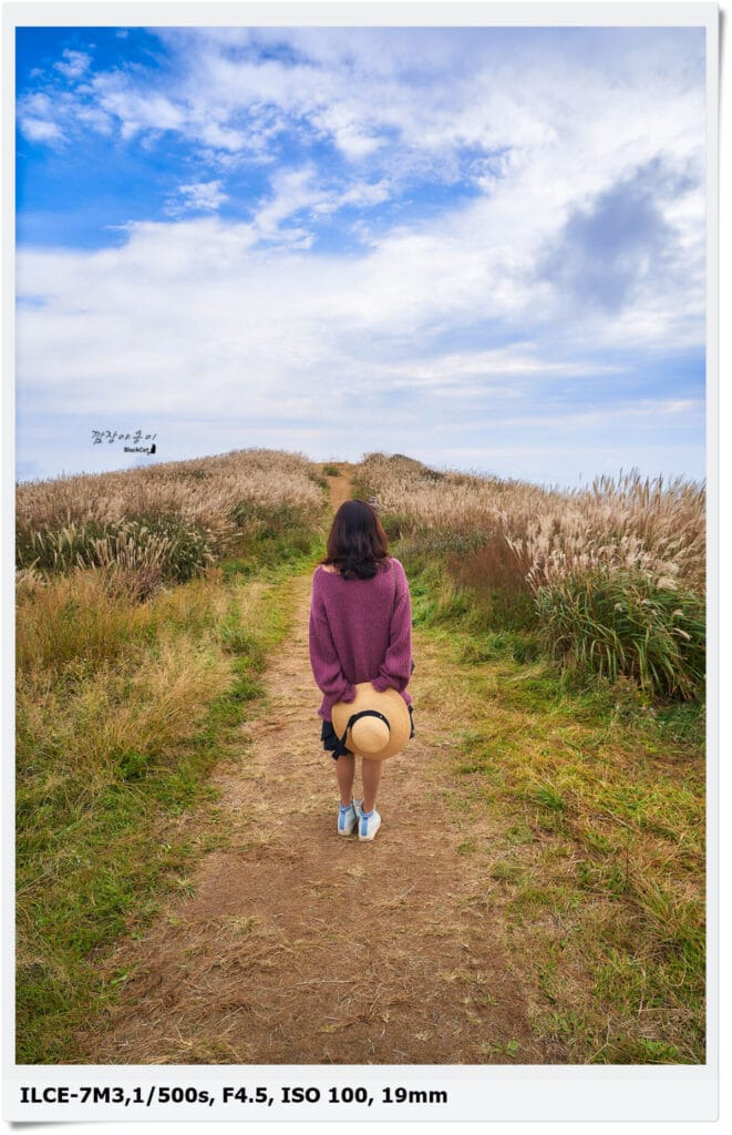 다행히 중간에 하늘이 잠시 맑아져서 황금빛 억새를 배경으로 멋진 사진을 많이 건질 수 있었는데요.
