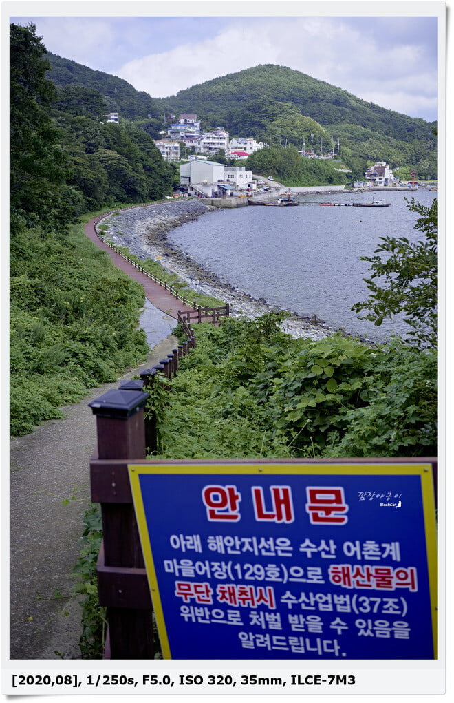 몽돌해변을 따라 끝으로 가면 큰돌과 함께 하트모양의 사진을 찍을 수 있는 곳도 있고 길따라 조금더 들어가면 산책로도 있는데요.