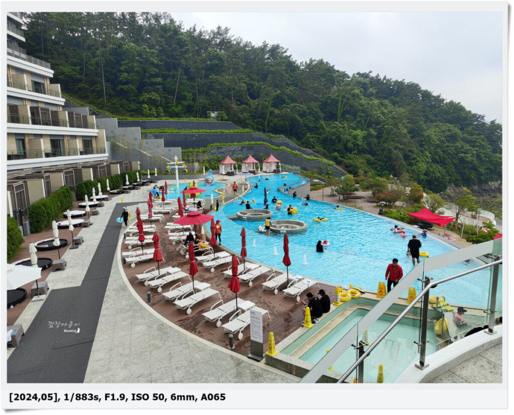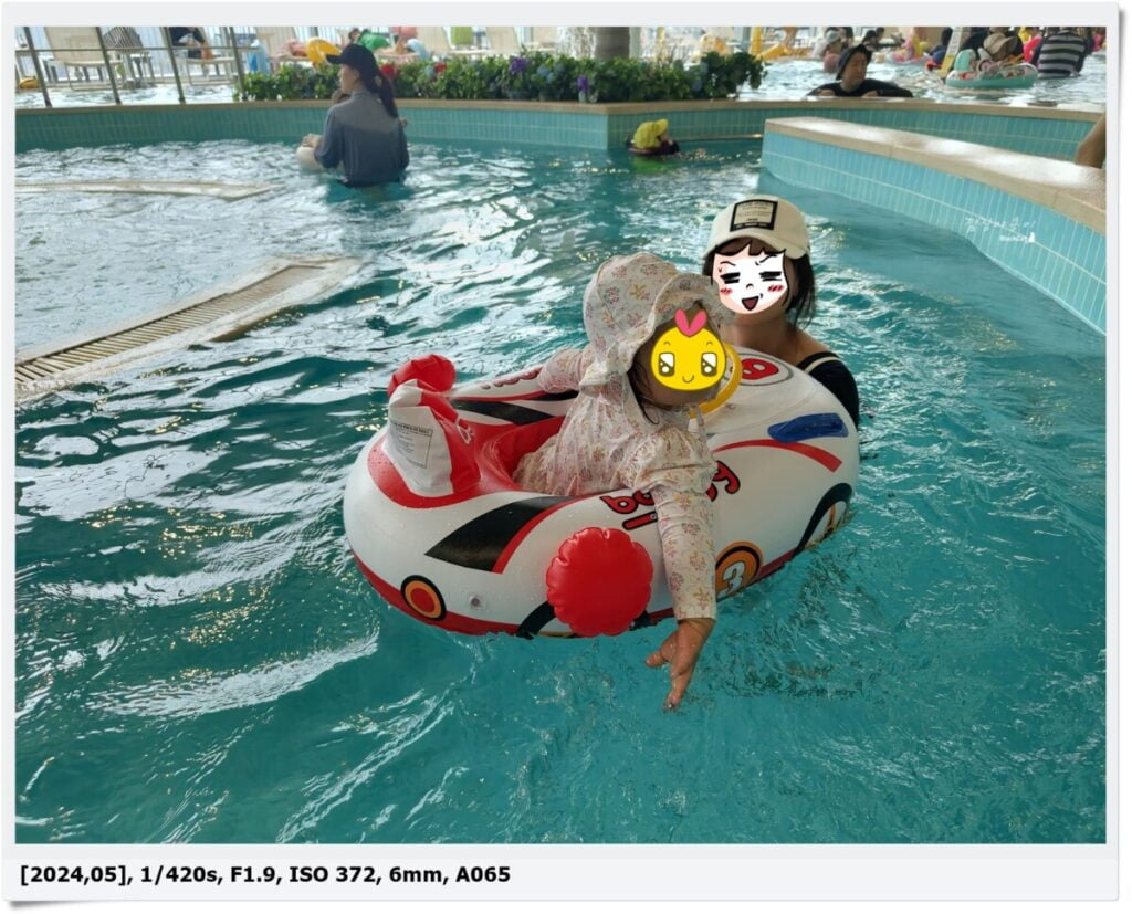 수영장이 좀 비싸긴 하지만 저희 햇살이가 워낙 물을 좋아해서 2박3일 일정 중 이틀이나 방문을 했네요. 첫째날은 비가 주륵주륵 와서 실내수영장만 이용했고 두번째는 날이 좋아 야외 수영장까지도 이용을 했답니다.