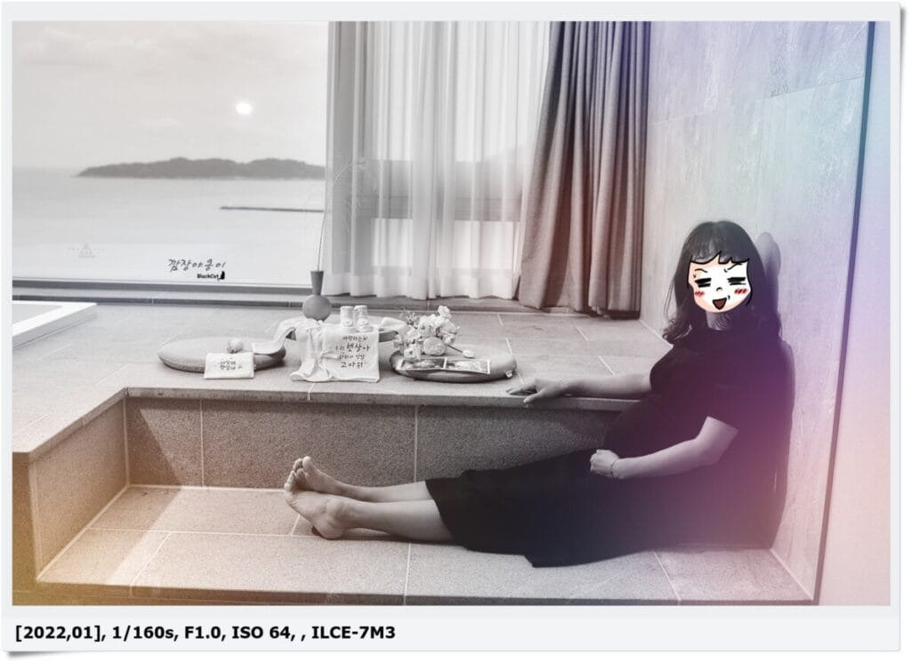 정말 딱 룸과 인피니티 풀만 생각한 가성비를 보자면 썩 괜찮은 수준이랍니다. 대신, 다른 시설이나 어메니티에 대한 건 포기하고 가셔야 할 듯해요. 그래도 저희 목적인 셀프 만삭 사진과 인피니티 풀샷은 달성하고 왔답니다.