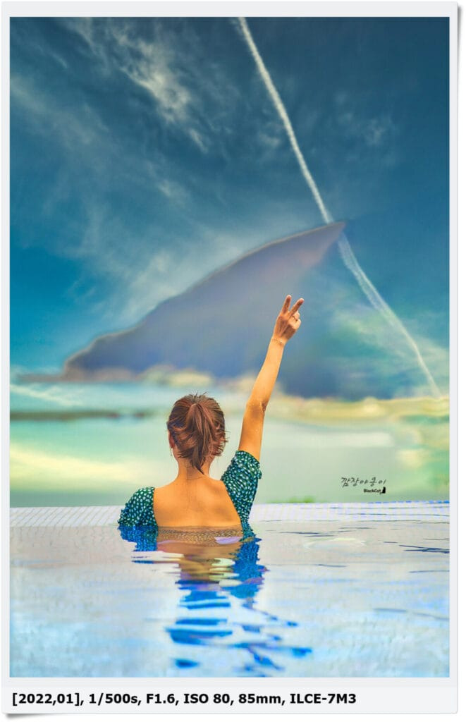 저희가 수영장에 갔던 건 일요일이었는데 생각보다 사람이 많지 않아서 사진 찍기에는 충분했네요. 온수풀이긴 하지만 물 위로 나와 있는 얼굴과 어깨는 추워서 와이프도 잠깐 놀고 사진만 후다닥 찍고 들어왔네요.