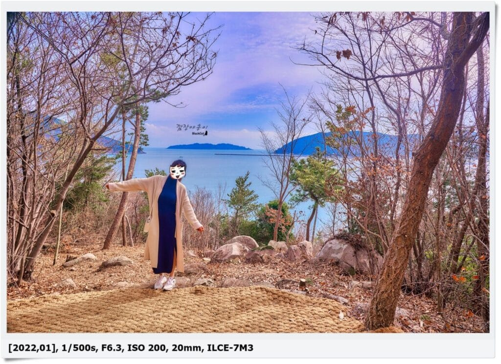 중간에는 전망대라고 해서 나무 사이로 바다를 볼 수 있게끔 조성해 둔곳이 있는데 생긴지 얼마 안된 산책로라 그런지 인위적인 느낌도 많이나고 억지스러움도 느껴졌는데요. 일부로 전망대를 만들기 위해 주위 나무를 베어버린 흔적들도 많이 보여서 아쉬웠네요.