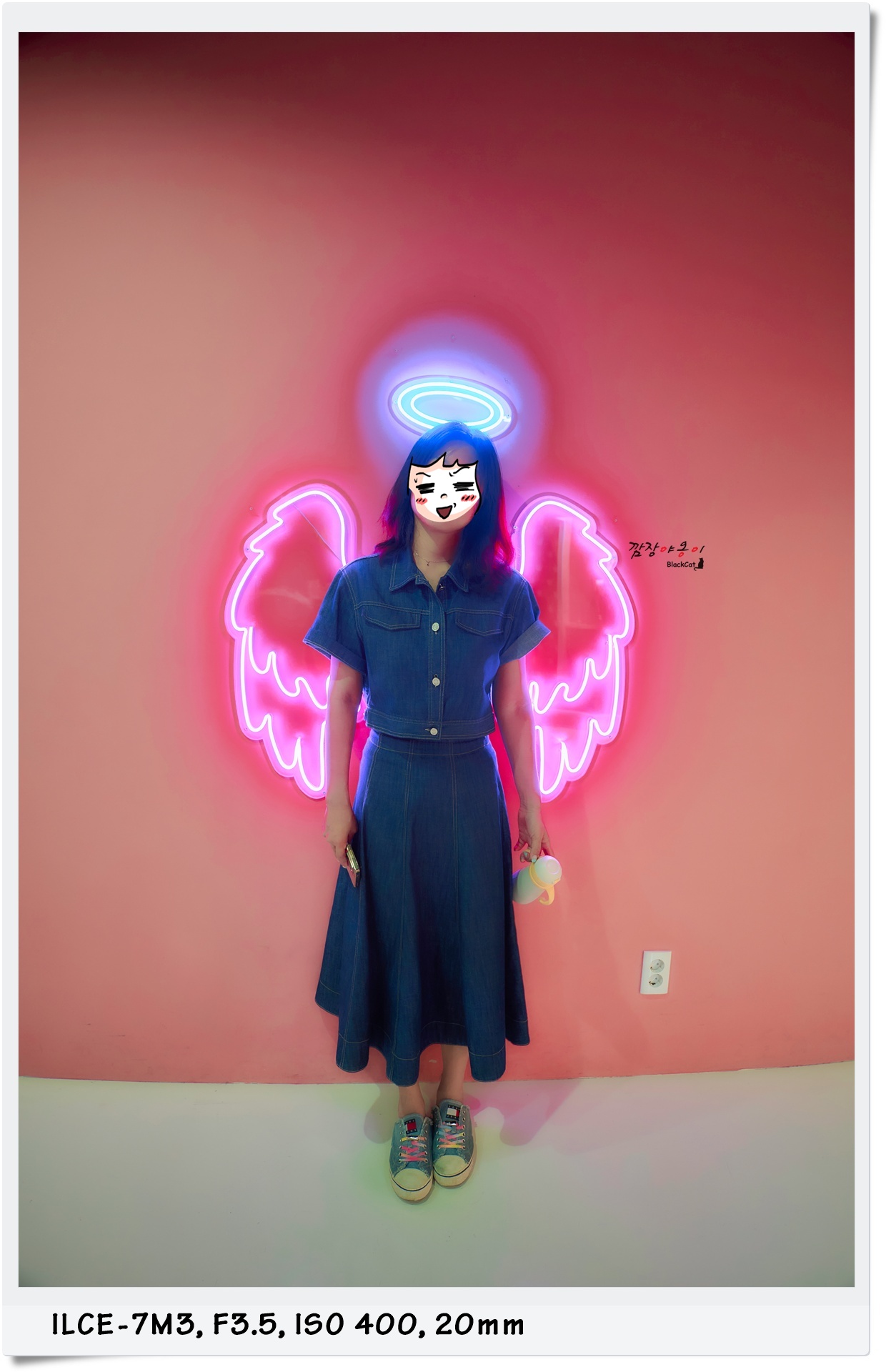 키가 작은 햇살이에겐 맞지 않지만 햇살맘에게 딱 맞는 천사날개랍니다. 보통 LED로 된 2번째 사진의 천사날개는 가끔 보이는데 손으로 그린 듯한 벽화는 참 오랜만에 보는 거 같네요. 너무 잘 그려서 감탄이 나온답니다.