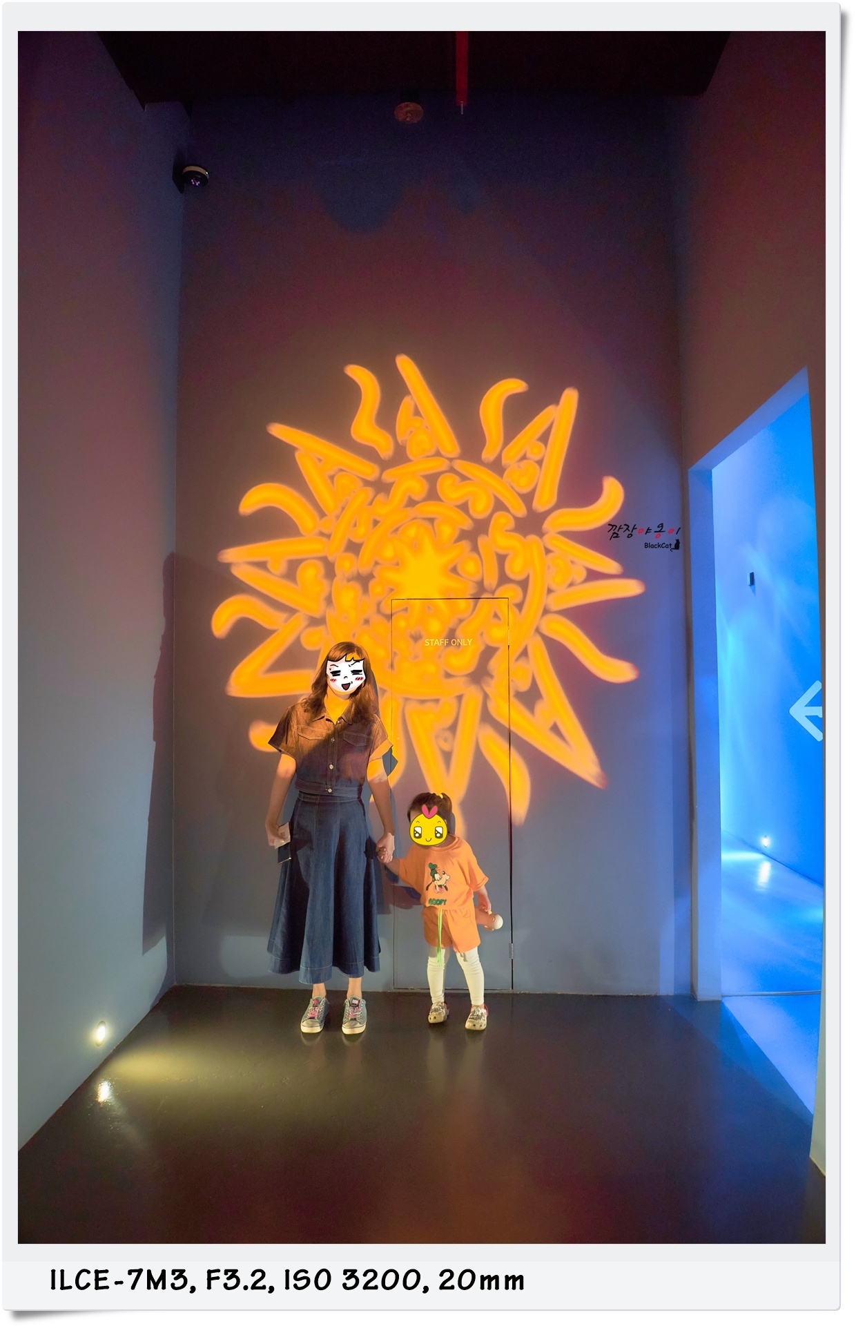 아쉽게도 햇살이는 여기까지 인가 봅니다. 아직 뒤쪽으로 가야 할 곳이 더 많은데 주위가 어두워서 그런지 아트월에 비친 동물들이 너무 커서 그런지 겁을 먹어서 나가고 싶다고 하네요.
