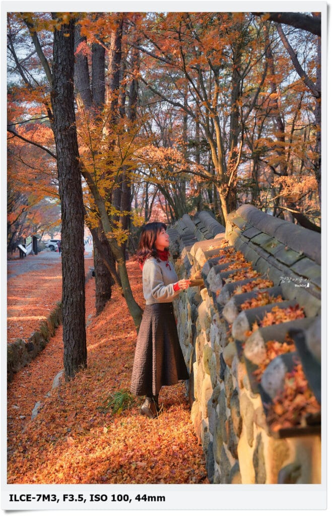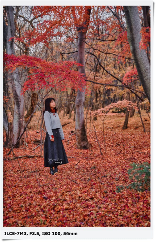 바닥에 소복히 쌓일 만큼 단풍나무 잎이 떨어져 있으니 여유 인원이 있으면 옆에서 낙엽을 던져주고 찍어도 예쁘게 나올 듯 합니다.