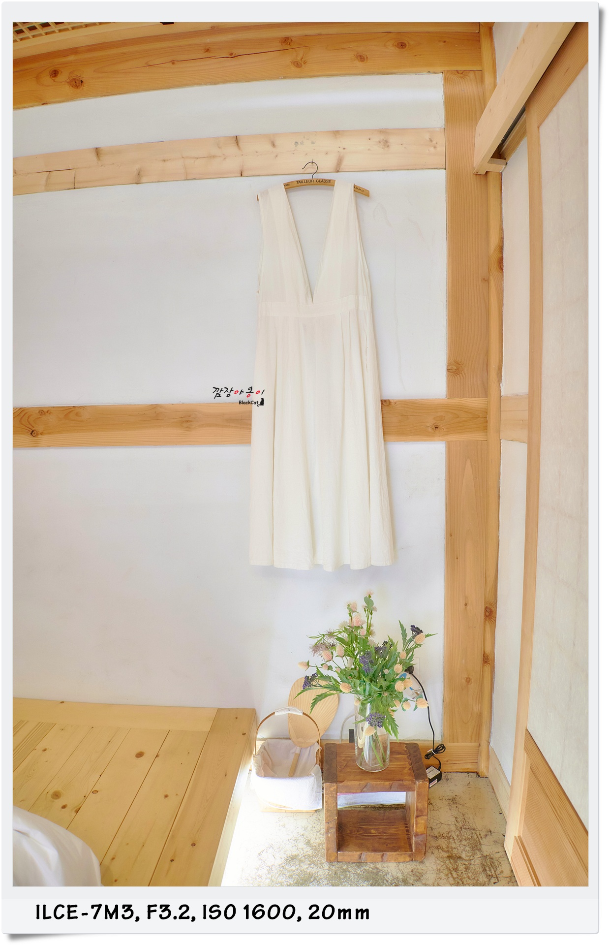 안방에 새하얀 드레스가 한벌 걸려있네요. 우리끼리 왔다면 저 드레스를 입고 사진을 찍어봤겠지만 시댁부모님들과 함께라 입어보진 못하고 걸려있는 옷만 구경했네요.