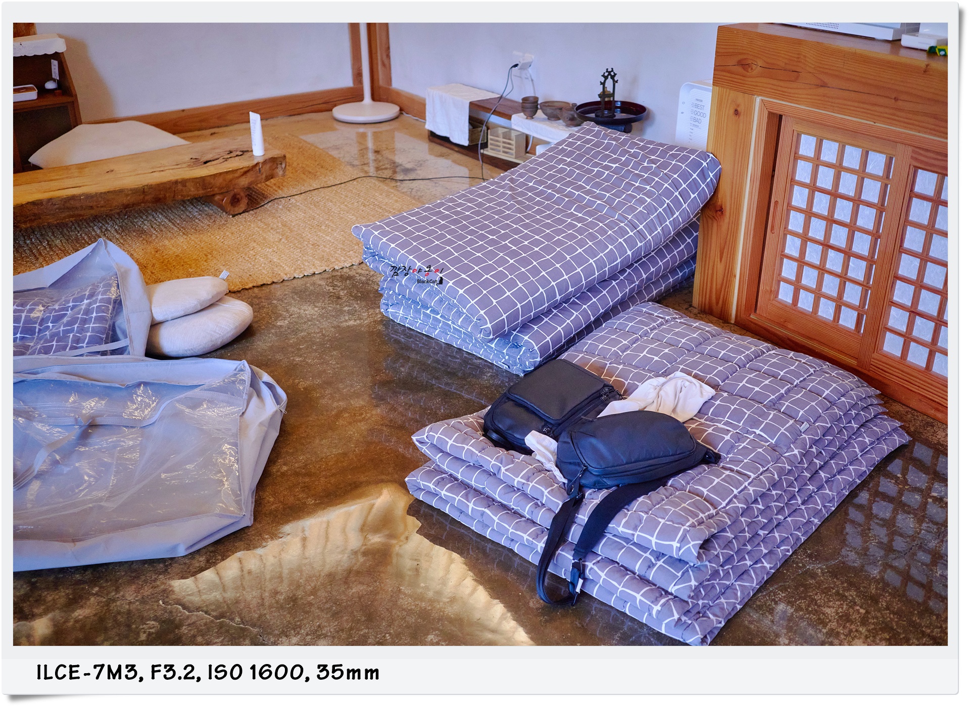 부모님들과 함께라 부모님이 안방에서 주무시고 저희가 거실에서 잤는데요. 미리 사장님께서 이부자리를 추가로 제공해 주셔서 거실에 매트를 깔고 지냈네요.
