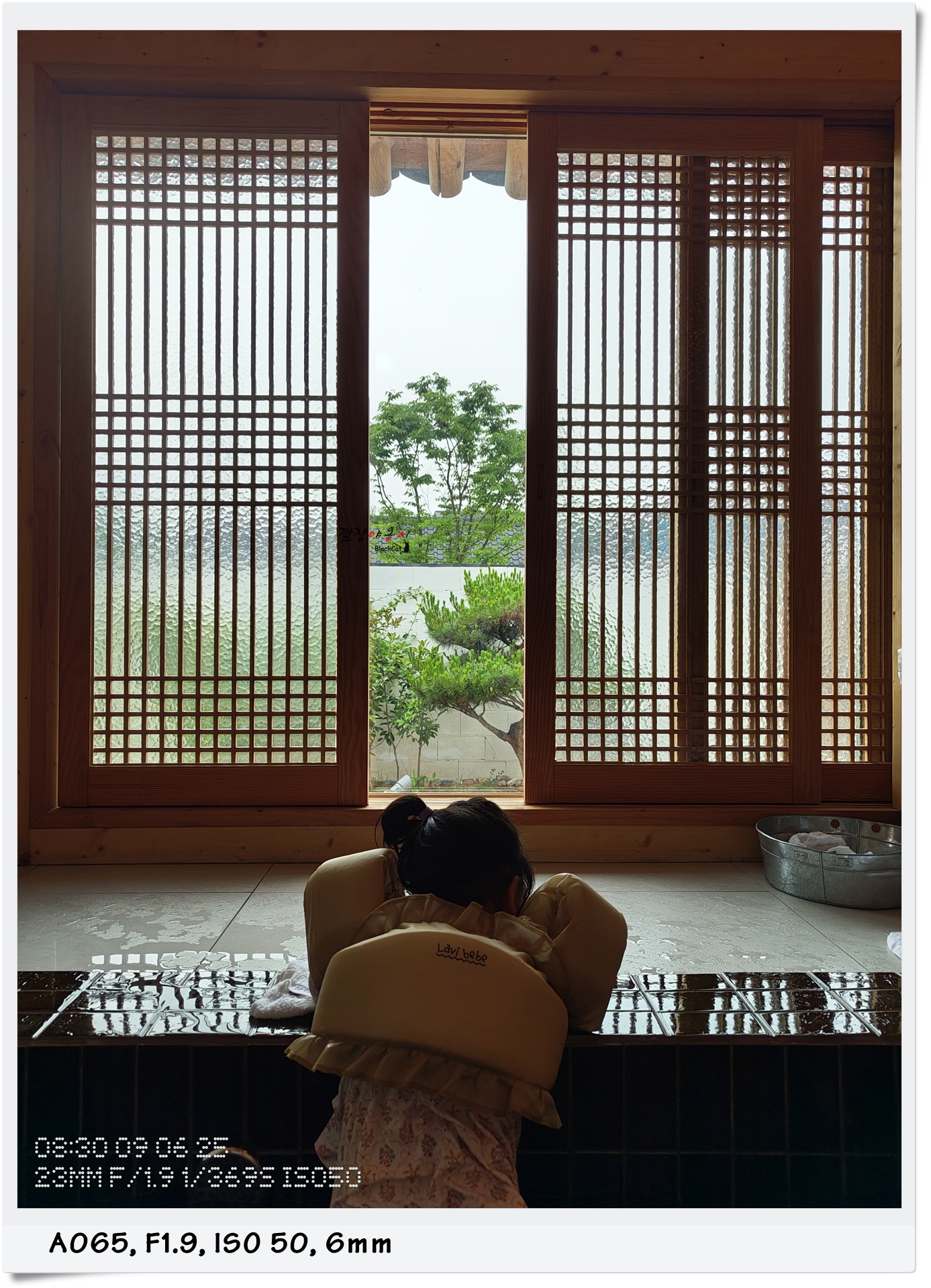 이렇게 자쿠지에 매달린채 창가 넘어로 사진도 한장 박았네요 ㅎ 예쁜 언니들이 야외 수영장에서 하던걸 햇살이에게 시켰답니다 ㅎㅎ