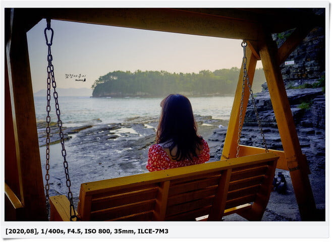 경상남도청소년 수련원을 지나 길따라 해안길을 걸어가면 노란색의 그네의자가 나오면 목적지에 도착을 했습니다.