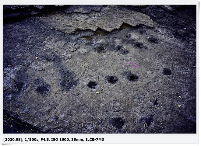 내려가는 길도 있으니 썰물때 맞춰 방문을 했다면 잠시 내려가서 공룡 발자국 옆에서 사진 한장 찍고 가도 될거 같네요.