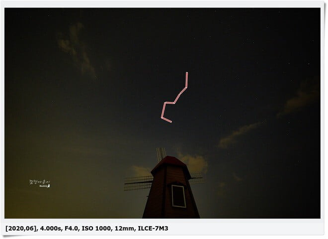 은하수는 못봤지만 대신 풍차의 머리위에서 북두칠성을 본 거 같네요. 사진이라 희미한데 실제 눈으로 봤을땐 딱 보는 순간 저건 북두칠성이다! 라고 할만큼 선명하게 볼 수 있었네요.