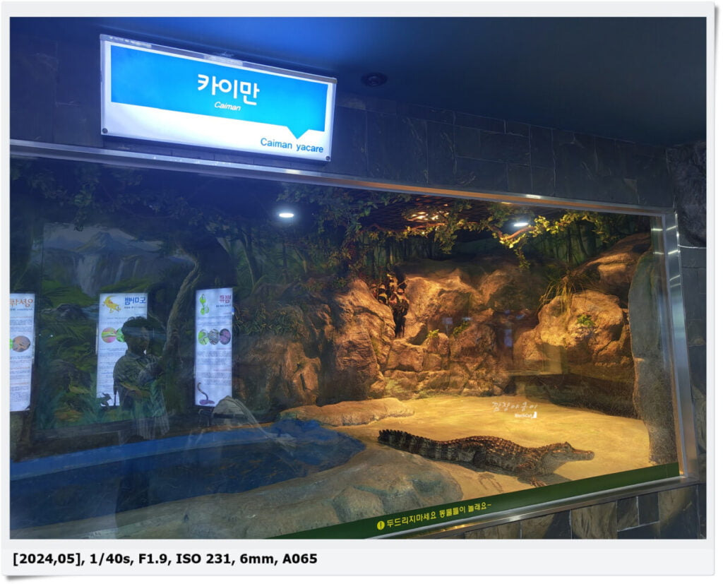 카이만이라는 이름을 가진 이 작은 악어는 저희가 머물던 1시간 가량 한번도 안움직이던데.. 그레도 유리창 앞에서 부동자세로 있어서 자세히 구경하기엔 좋았네요.