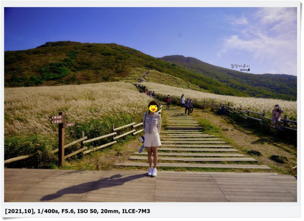 억새평원이 아니라 바람의 언덕으로 착각할 만큼 바람이 엄청나게 많이 불어서 머리카락이 휘날리고 사진찍기는 힘들었는데 그래도 금빛물결을 배경으로 해서 생각보다 괜찮은 사진을 많이 건진거 같아 좋네요.