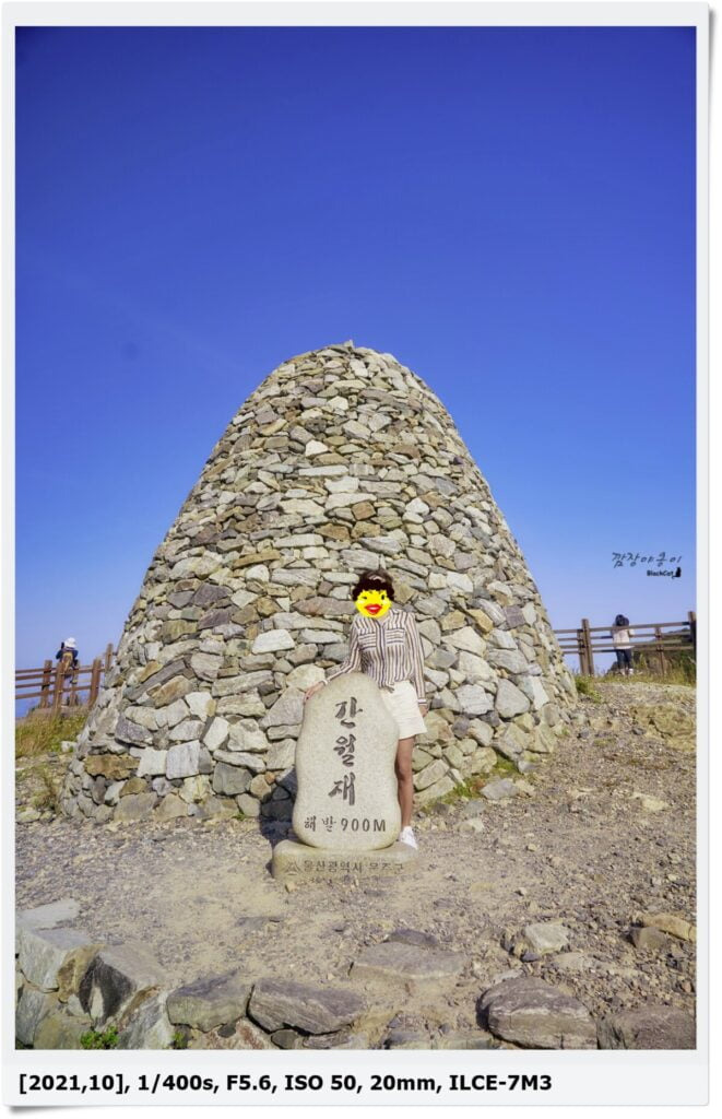 간월재는 해발 900m이고 간월산은 해발 1,083m 신불산은 해발 1,159m입니다.
