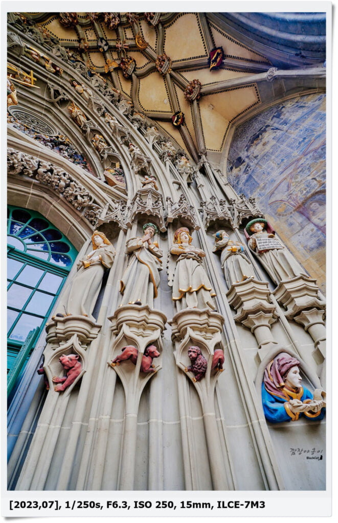 스위스에서 가장 큰 성당인 The Cathedral of Bern입니다. 한쪽은 공사중이고 내부는 무료로 입장이 가능합니다. 입장권을 구매하면 꼭대기까지 올라갈 수 있다곤 하는데 저희는 내부만 살짝 둘러보고 나왔네요.