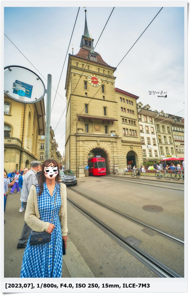 비슷해 보이지만 다른 시계탑과 감옥탑입니다. 기차역에서 출발해 장미공원으로 가다보면 만날수 있는 베른의 상징적인 2개의 탑으로 시계탑의 경우에는 탑 아래로 트램이 지나다니기도 합니다.