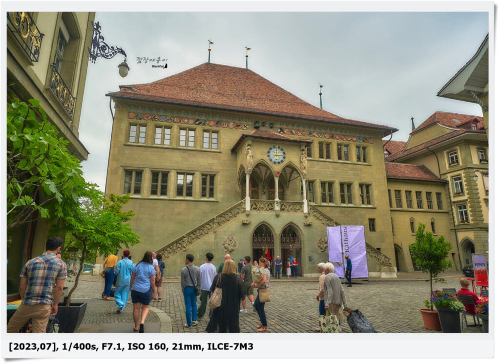 정답은… 이곳이 시청이라고 합니다. 우리나라의 시청, 아니 관공서를 보면 으리으리하게 크고 돈 많이 들어간 티를 팍팍내면서 건물을 짓는데 베른 시청은 우리가 흔히 보아오던 그런 규모의 건물은 아니었네요.