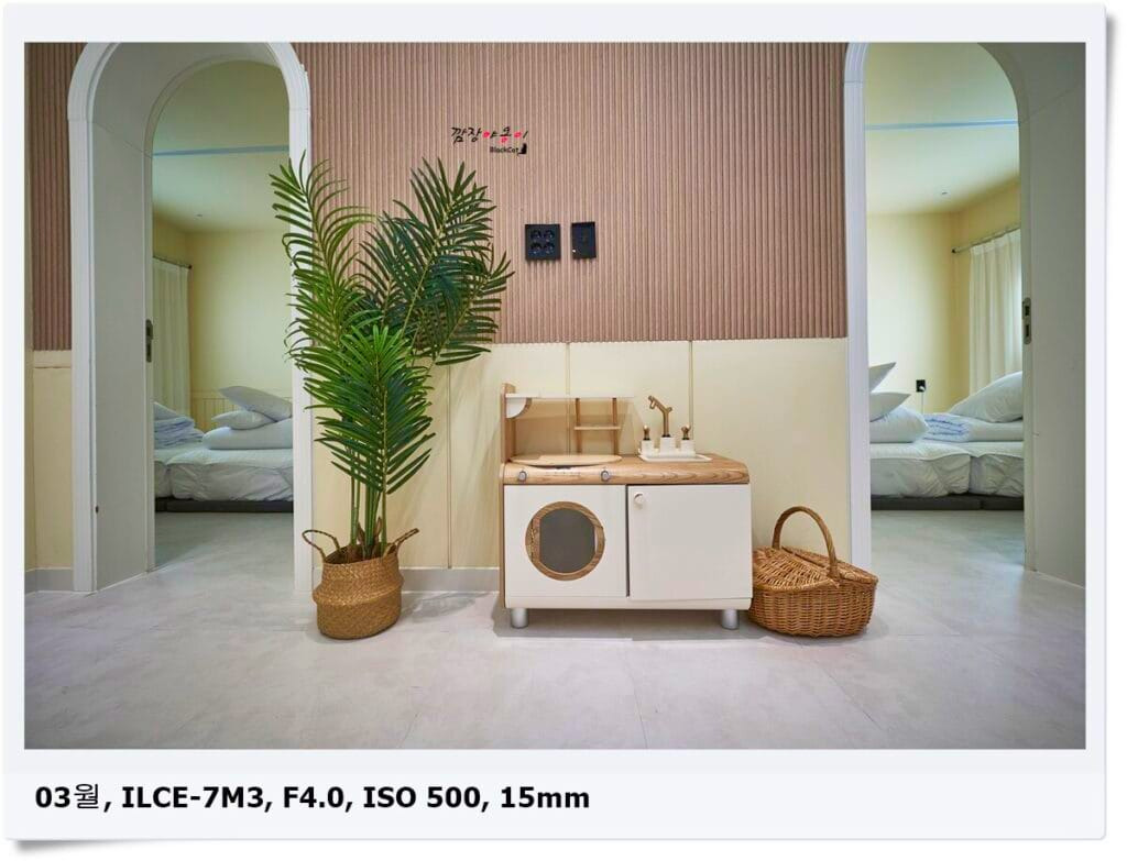 2개의 방으로 되어 있습니다. 조금 큰 아이들이라면 따로 자도 되고 친구네와 함께해도 괜찮을 듯 싶네요.
