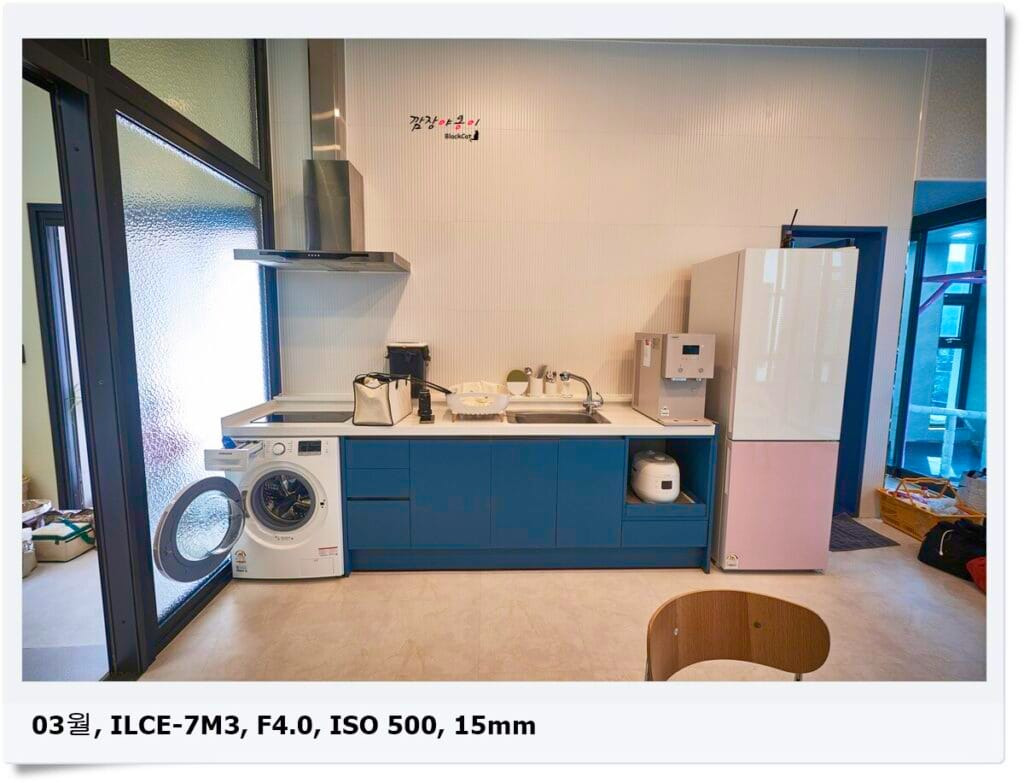 나머지 하나의 화장실은 주방에 있어 물놀이를 하고 나와서 바로 씻을 수 있는 위치에 있으며 내부에는 욕조가 있어 미리 물을 받아 놓으면 반식욕을 비롯해 목욕탕 처럼 이용할 수 있을 듯 하네요.