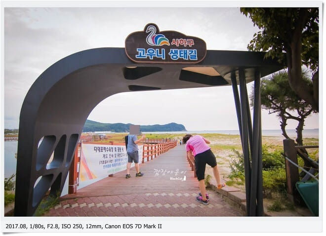 저희도 처음에는 바닥에 모래밖에 없었는데 길을 따라 걷다보니 어느새 목조다리 아래로 바닷물이 밀려들어와 물이 찰랑거리고 있네요.