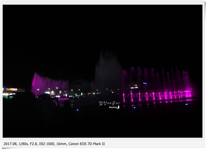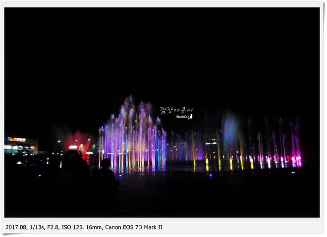 분수 바닥지름이 2,519제곱미터, 분수노즐이 1,046개, 조명이 1,148개에 최고 물높이가 무려 55m에 달하는 분수로 국내 최대규모로 매주 월요일은 분수대가 가동을 하지 않습니다.