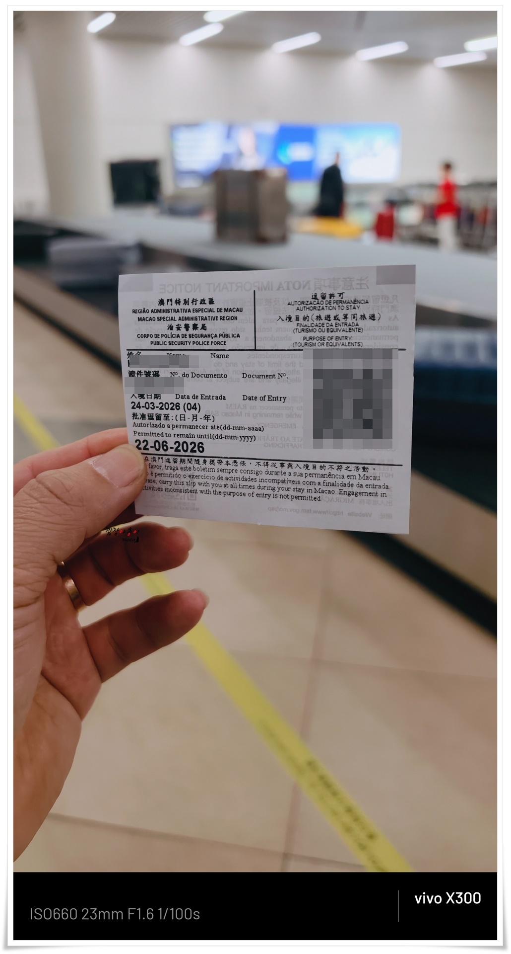 공항 입국심사를 하고 나면 이름과 QR코드등 개인정보가 적혀 있는 종이를 줍니다. 호텔 체크인할때 필요하니 버리지 마시고 여권사이에 잘 끼워두세요.