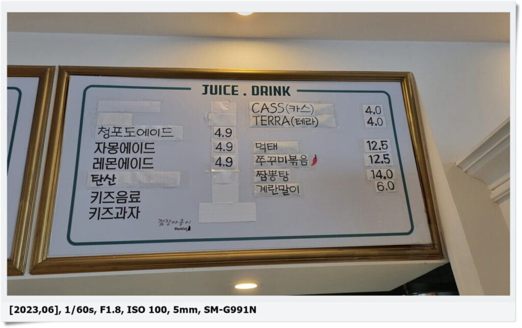 음료, 술부터 안주와 끼니가 되는 음식까지 메뉴가 다양하네요. 근데 여기 베이비카페인데 왜 술과 안주가 많은 거 같죠? ㅎㅎㅎㅎ