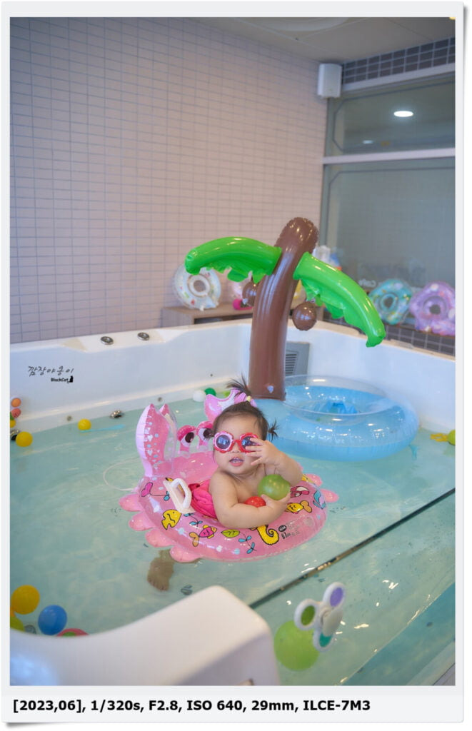 어찌나 잘 놀던지.. 사장님 말씀으론 보통 아기들이 물놀이전 샤워, 물놀이후 샤워시간을 제외하고 실제로 수영장에서 노는 시간은 보통 15분 내외라고 아기들이 잘 놀지 못해 돈아까워하시는 분들도 더러 있다고 하시던데 저희 햇살이는 역시나 물을 좋아하는 아기답게 1시간을 꽉꽉채웠네요.
