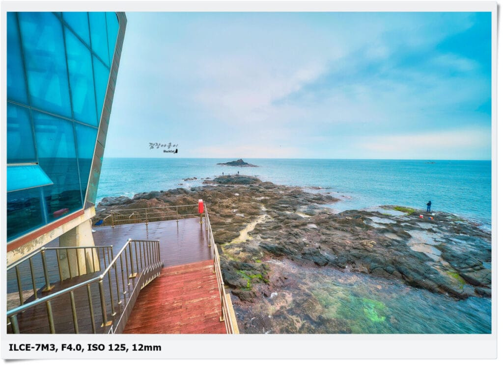 앞에 보이는 넓은 갯바위는 다리 끝에 있는 계단으로 내려가시면 바로 연결이 되어 있답니다.