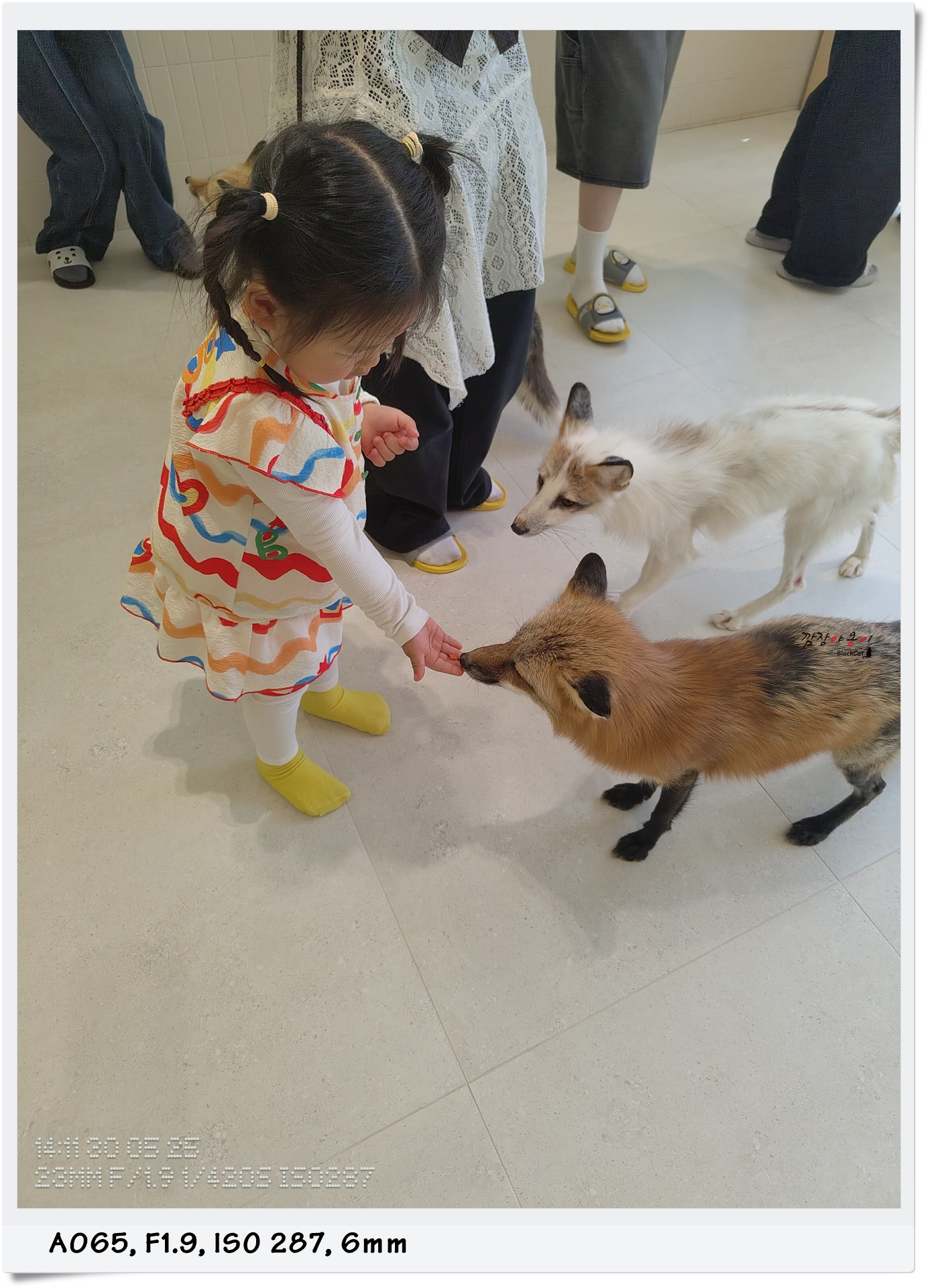 늑대는 개과라고 예상을 했지만 여우가 개과일 줄은 몰랐네요. 개과 동물 답게 기본적인 엎드려, 앉아가 가능하고 먹이를 위로 던져주면 점프해서 먹기도 하는 등 제가 생각하던 여우들과는 사뭇 달랐네요.
