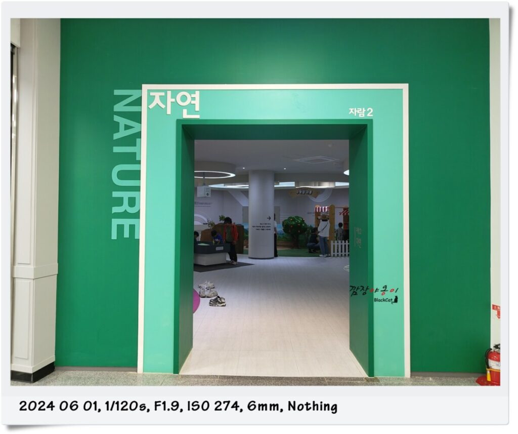 자연관은 큰 수조속 물고기를 만날 수 있는 곳, 밭에서 채소를 뽑아 마트 진열장을 이용해 판매를 할 수 있는 곳 등 자연과 관련되어 있는 놀이시설물로 지진대피 등 위험상황에 대비한 교육시설도 포함되어 있습니다.
