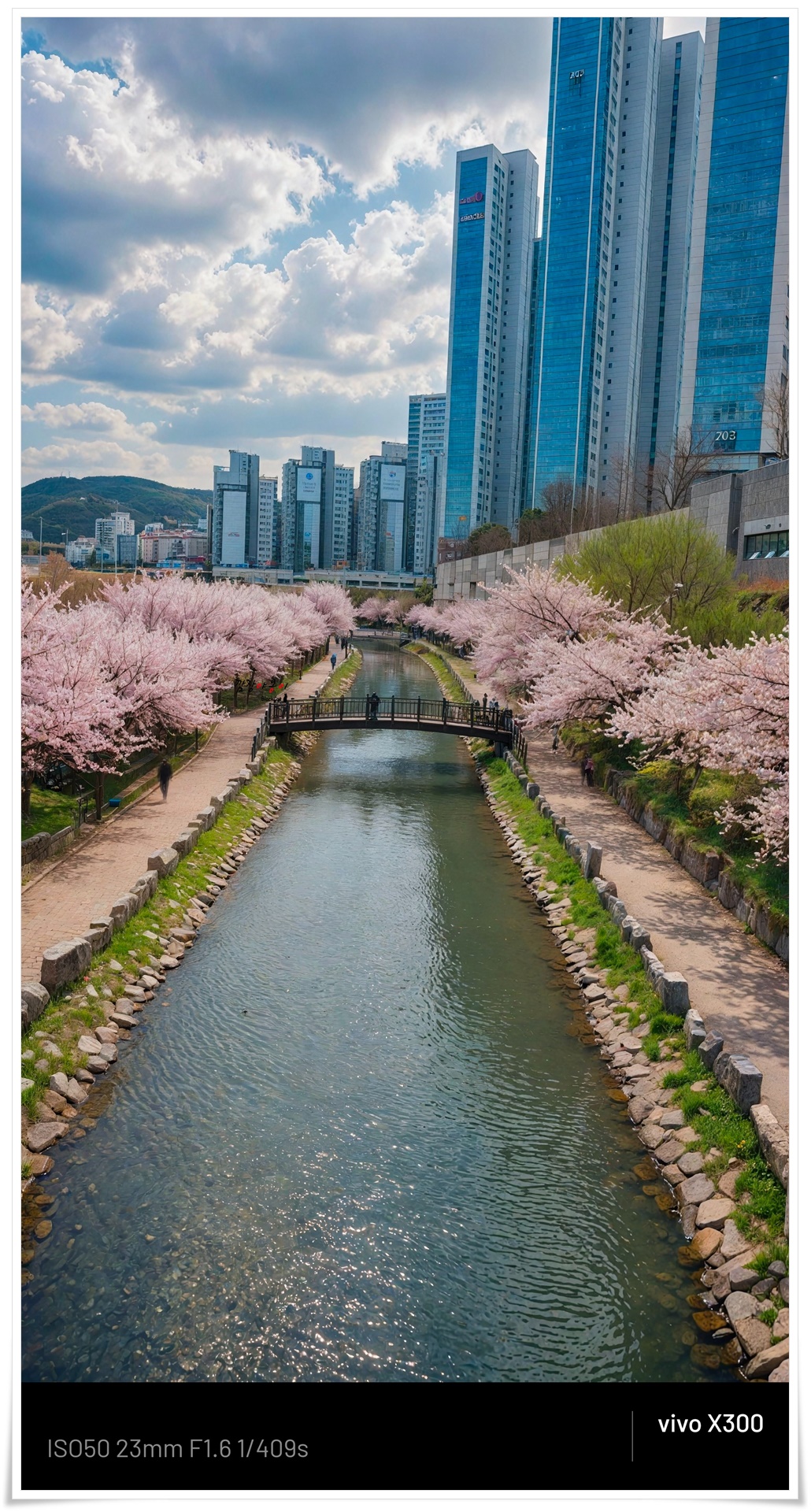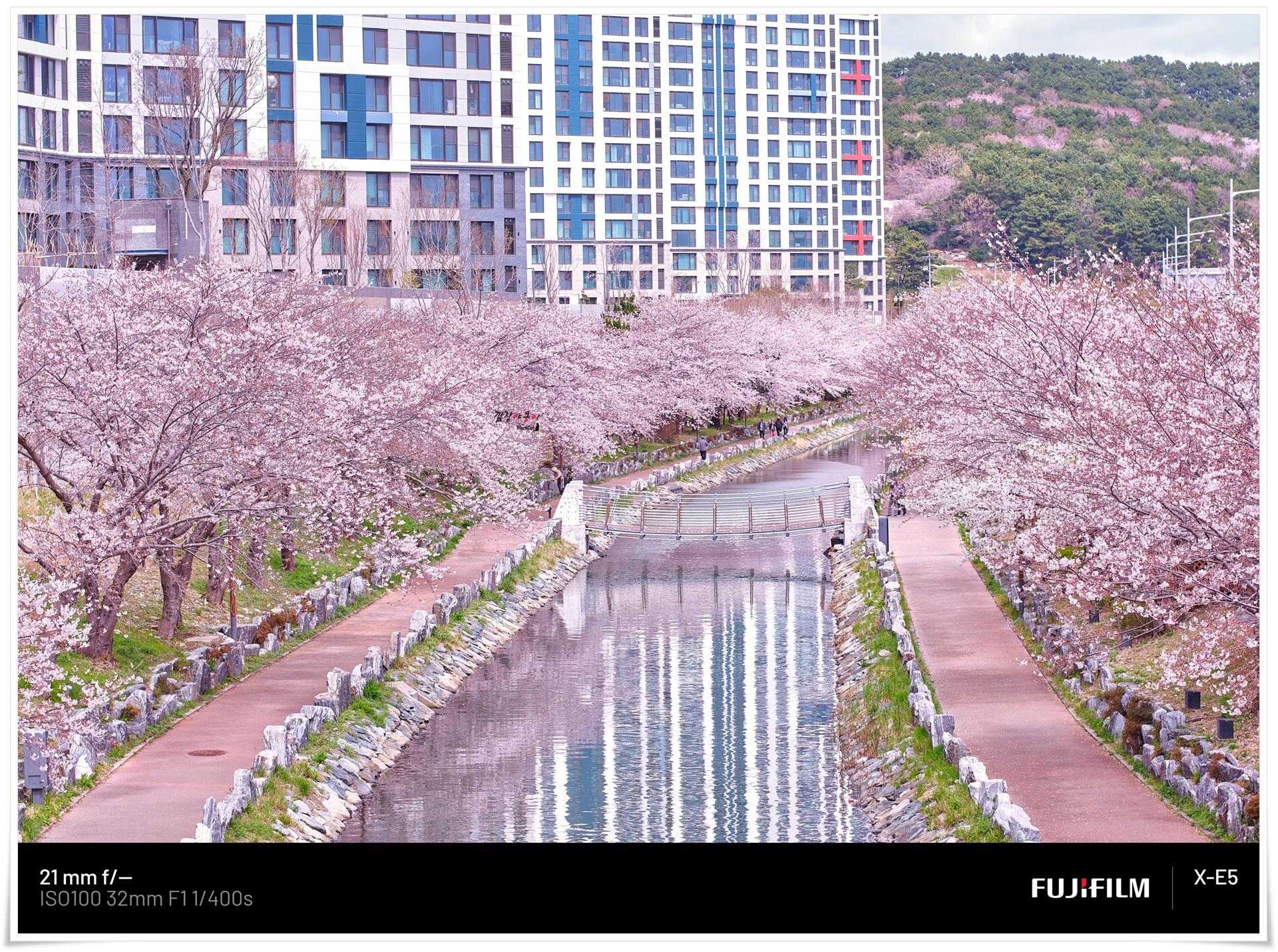- 하천 양옆으로 형성된 벚꽃 터널