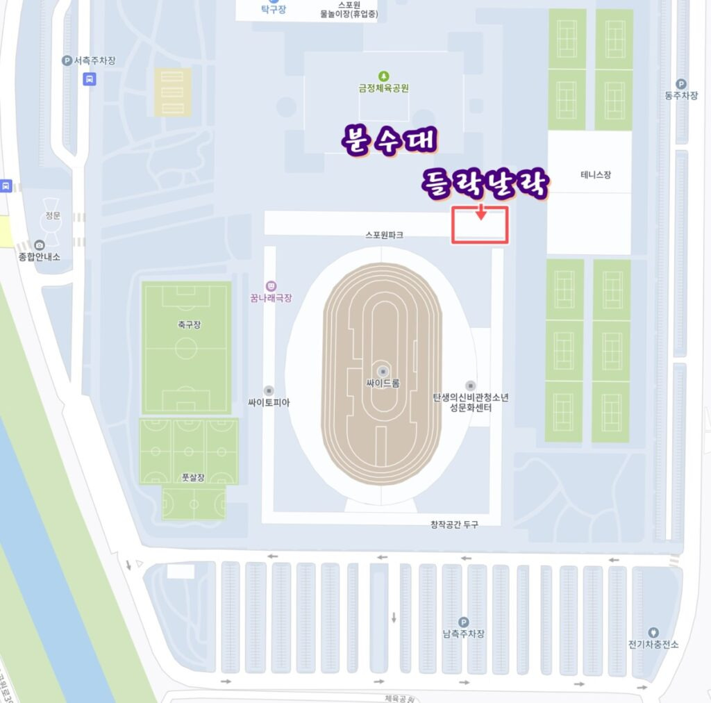 다른분들 블로그를 보면 위치가 정확히 안나와 있고 단순히 스포원만 찍어둔 분들이 많으신데 스포원에 있는 '들락날락'의 위치는 위 지도의 표시점에 있습니다.