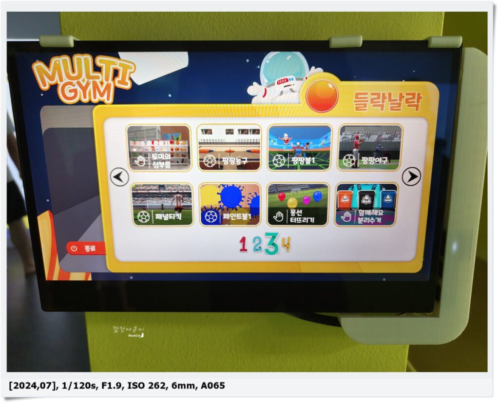 대형 스크린을 이용해 여러가지 게임을 즐길 수 있는 공간도 있습니다. 게임 선택이나 실행은 외부의 패드가 아닌 스크린의 글씨를 터치하면 인식이 되도록 되어 있네요. 사람 없을때 패드를 열심히 터치해 봤는데 아무런 변화가 없어서 다른분들 하시는거 곁눈질로 살짝 보니 바로 스크린을 통해 나온 버튼을 벽에서 누르면 실행이 되도록 되어 있네요.