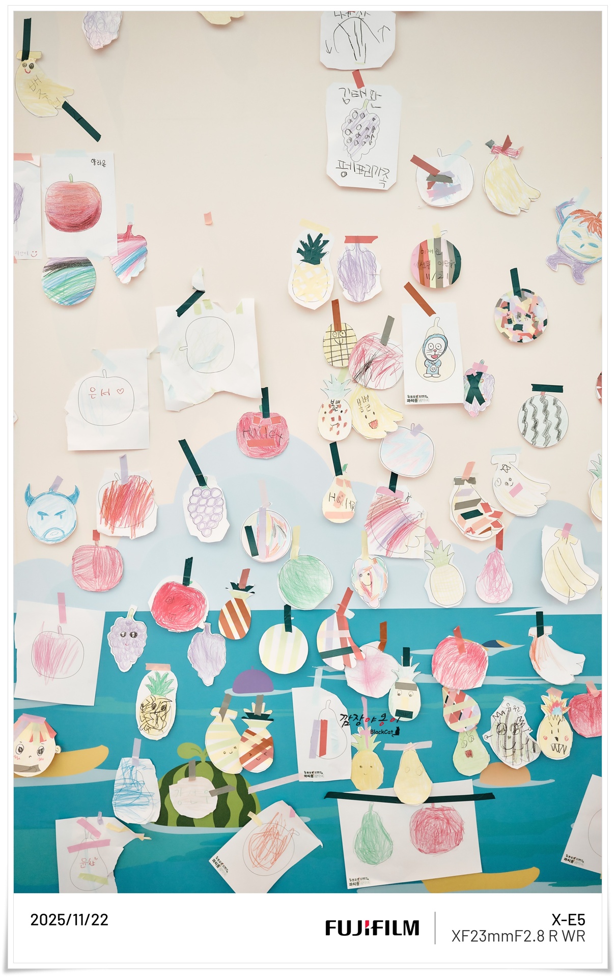 아이들이 색칠을 해서 벽면에 전시도 합니다. 4살 햇살이도 색칠놀이에 관심을 보이고 색칠까지 했지만... 역시 아직 예쁘게 하진 못하고 원안에 제대로 색칠이 안되어 마음대로 찍찍 그어내곤 마네요.