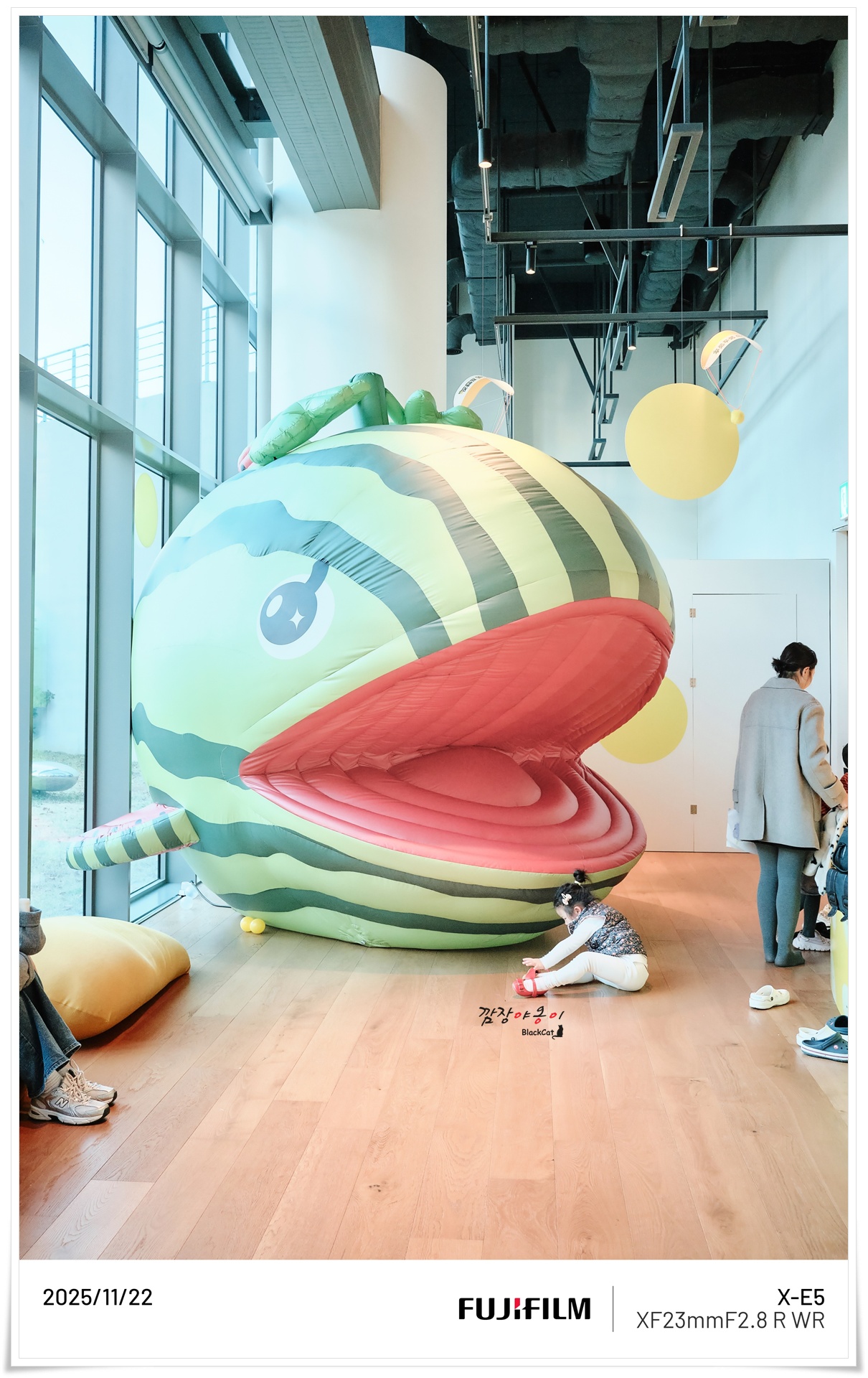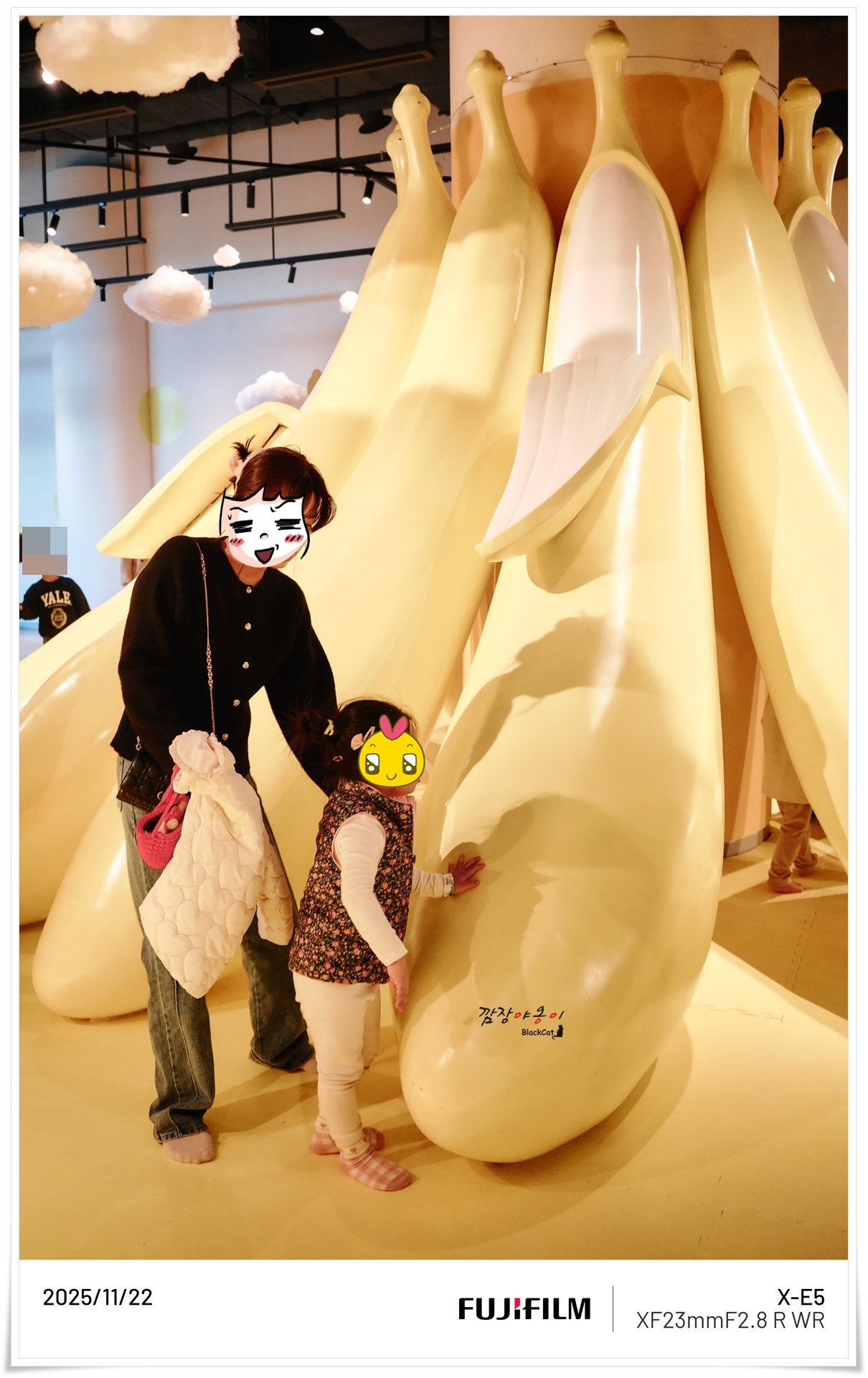 지하에 있는 바나나를 제외하고 이곳에 있는 커다란 인형들은 모두 바람을 채워 넣은 풍선들이라 사람이 기대면 바람이 쏙 빠지며 넘어집니다 ㅋㅋ