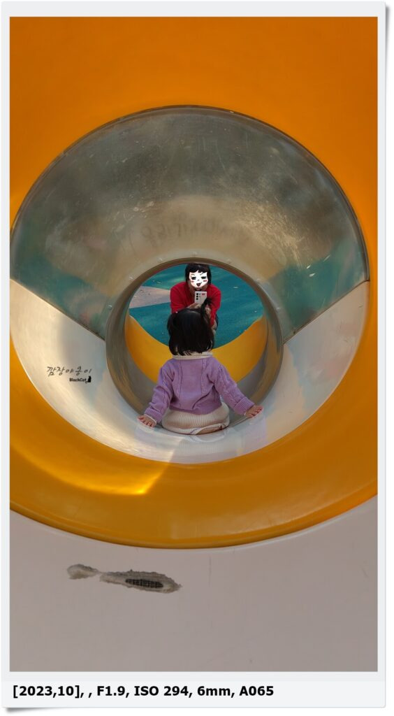 보다시피 작은 건축물이라 내부도 많이 좁아요 ㅎㅎ 어른이 들어가면 몸을 펴기 힘들답니다. 햇살이가 놀고 있으니 다른 오빠(?)들도 오던데 짧게나마 햇살이와 즐겁게 놀아주곤 엄마, 아빠 따라 갈길 떠나네요 ㅎㅎ